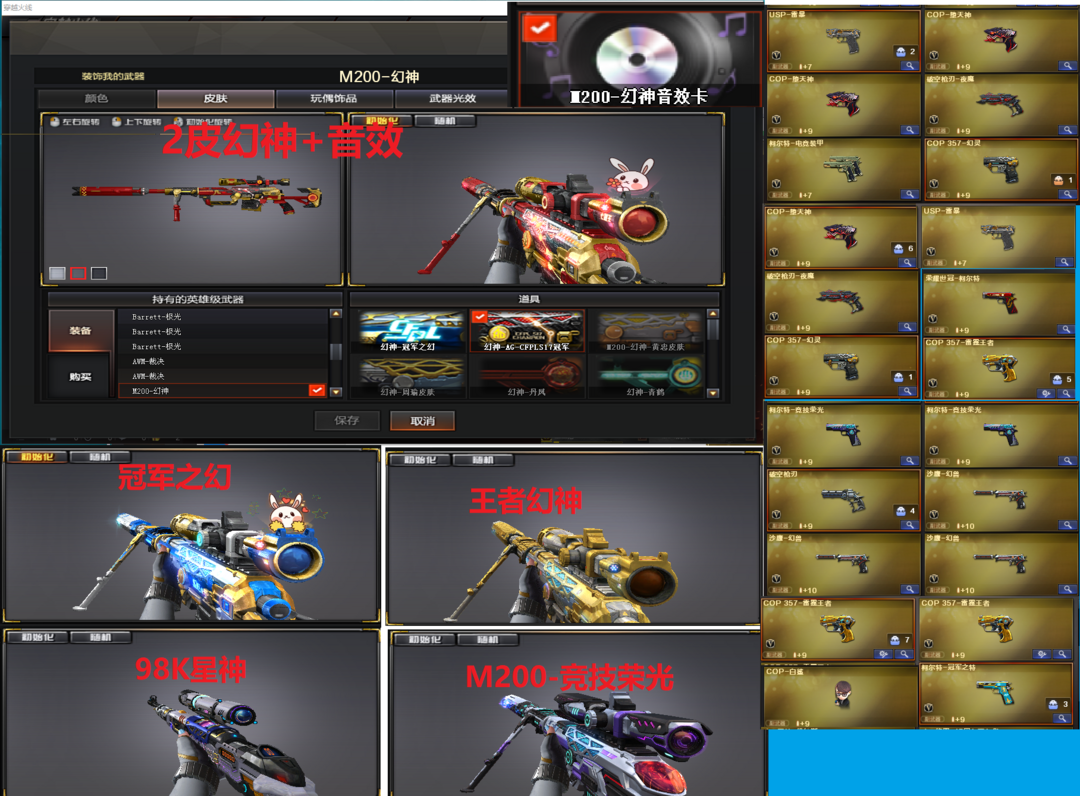 2皮幻神音效【冠军之幻AG】星神全手枪|白虎5幻兽套500V6盘6烈蝴蝶|生化背包|传说女帝ぃ四防
