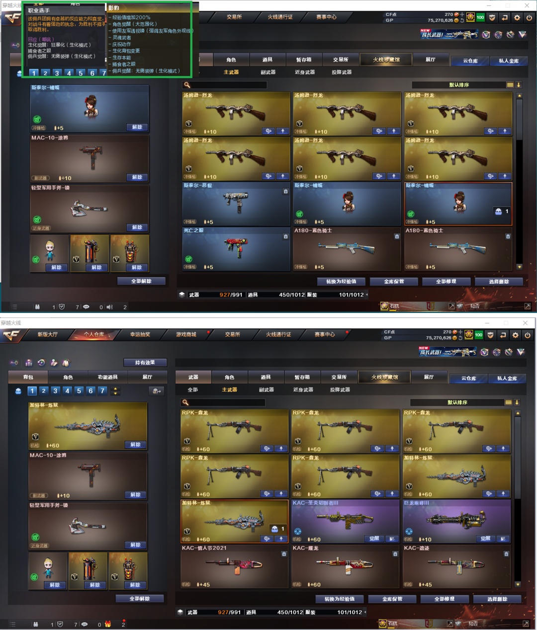 装备描述:排位:可以--------------生化四防(可以变更背包、查看生化僵尸血量)无需换弹、6烈、6盘、斯泰尔蝴蝶、死亡之眼、Mac涂鸦、手斧镜、生化减速雷、全部弹匣、、、、、、、爆破四防:幻神音效(宠儿、周瑜、白鲨皮肤)、USP雷暴、COP雷霆、2个COP幻灵、COP堕天神、星神、白虎、QBZ-金色蔷薇、、、幻神音效、雷神音效、毁灭音效、火麒麟音效、黑骑士音效、、5套雷霆、7套雷暴、6套堕天神、1套夜魔、8套幻灵、1套神工天巧、、、生化四防(影豹、职业选手)、爆破四防(传说女帝、职业选手)