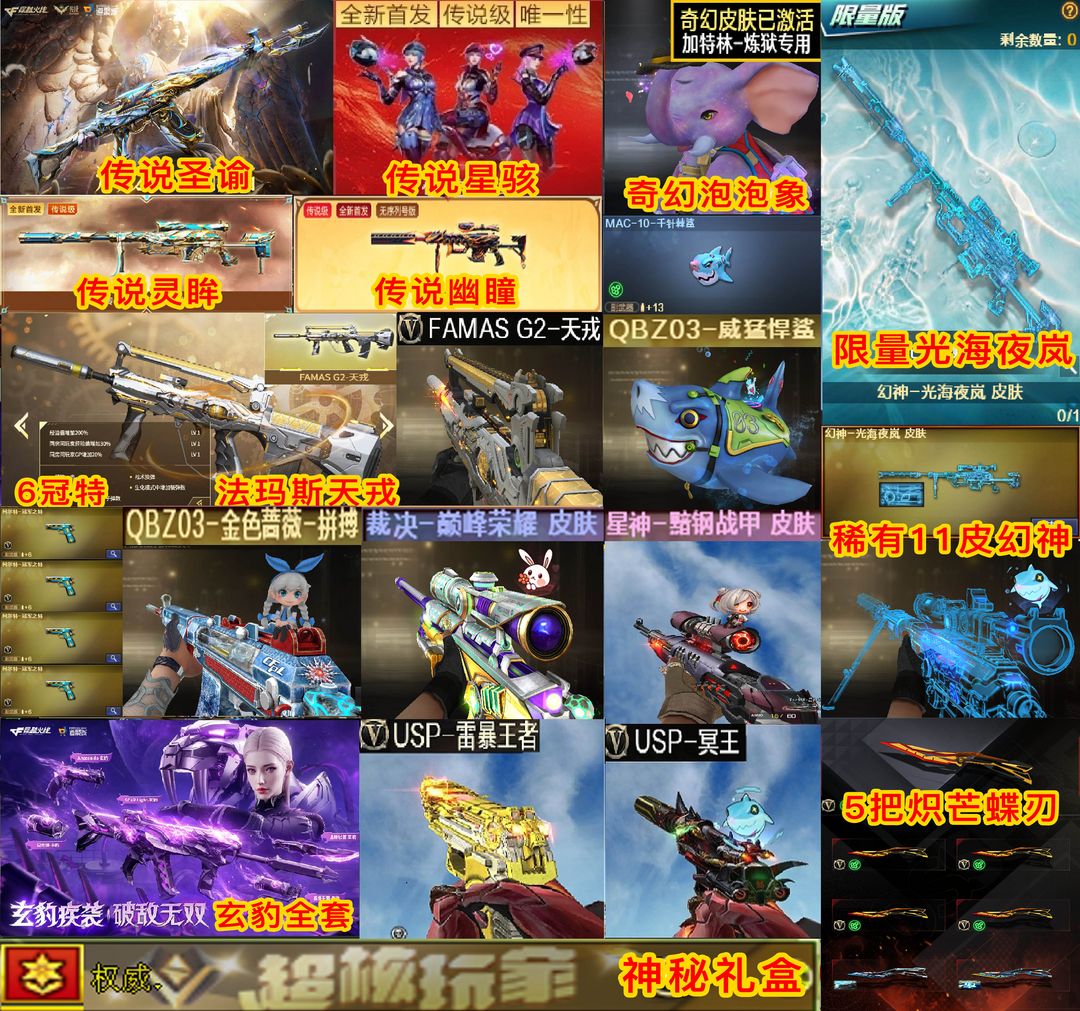限制: 租号5次及以上 | 撤单率<50%才可租用此帐号装备描述:【装备道具】FAMAS G2-天戎/USP-冥王/USP-雷暴王者/炼狱-奇幻宇宙万象/❤传说影煞/传说星骇/传说圣谕/传说辉光/传说幽瞳/传说梦魇/传说灵眸❤幻神-光海夜岚/幻神-电流骇客/幻神-纸灯龙/幻神-AG-CFPL S24冠军/幻神-欧欧/幻神-荣耀世冠白鲨2023/幻神-N9-2022MVP/幻神-宠儿-2021MVP/幻神-冠军之幻/幻神-青鹤/幻神-CFS2022/星神-黯钢战甲/星神-冠军之星/星神-璀璨/金色蔷薇-枪娘阿敏/白虎-白鲨-CFPLS23冠军/白虎-冠军之虎/白虎-霓虹机甲/QBZ-CFS2024/QBZ-巅峰荣耀/QBZ-冠军之薇/QBZ-传奇宠儿/QBZ-金色蔷薇-拼搏/天启-黯钢战甲/幻神音效卡/星神音效卡/金色蔷薇音效卡/天罚音效卡/白虎音效卡/朱雀音效卡/极光音效卡/❤云龙套装/玄豹套装/VSK-94-金蚀/王者风神-觉醒版/炼狱-百战金芒/王者冰锋/5把炽芒蝶刃荣耀世冠白鲨/4冠军之特/2柯尔特白鲨/SCAR玄豹/5COP幻灵/COP云龙/QBZ云龙/QBZ天罚/QBZ03-威猛悍鲨赋予/异变清道夫-蛇影双骄/斯泰尔-蝴蝶/MAC-千针棘鲨