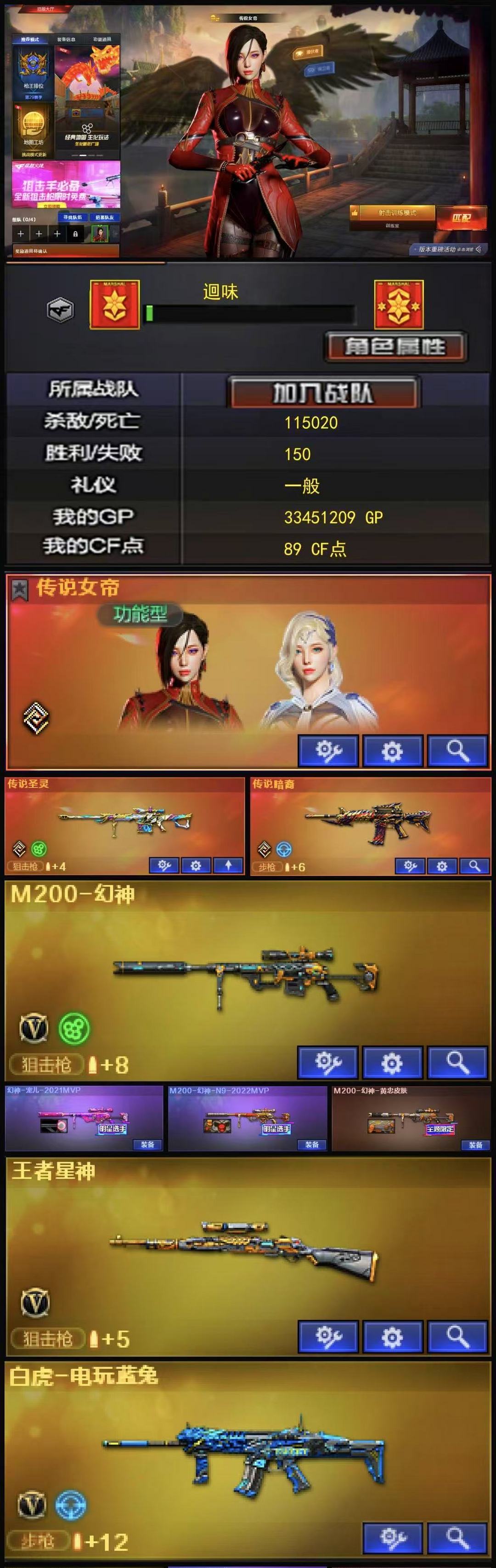 限制: 租号1次及以上 |装备描述:本账号已经过虚拟财产认证,请各位科技大神高抬贵手。如果账号因租客恶意导致封禁,我们可以找平台索要个人信息照价赔偿。谢谢合作惠顾||||||||| 传说女帝+传说圣灵+传说暗裔+3皮幻神宠儿N9黄忠+王者星神+白虎qbz冠军之薇金色蔷薇音效卡+雷暴USP+1炼狱+斯太尔蝴蝶【54v】