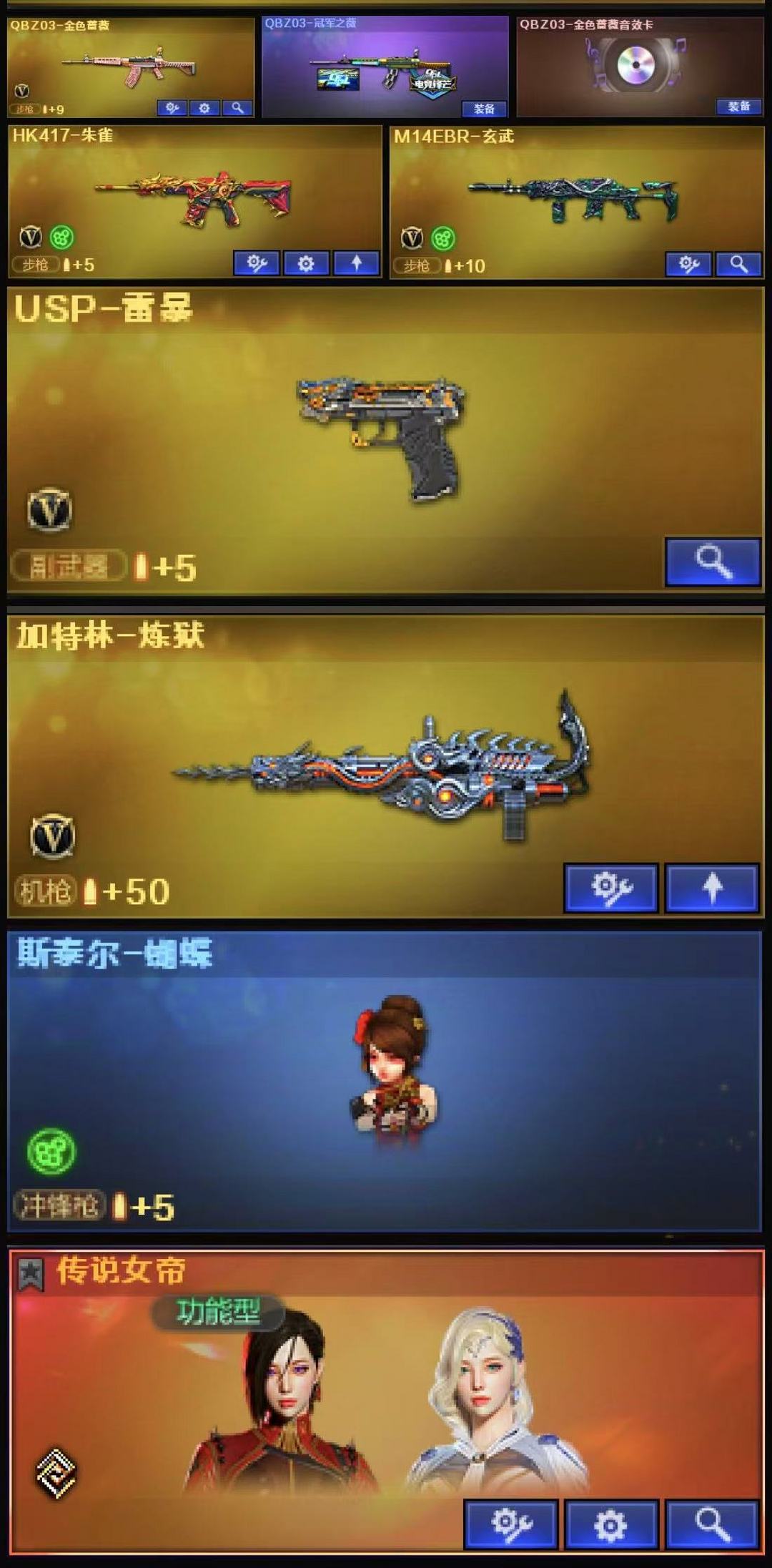 传说女帝圣灵+传说暗裔+3皮幻神宠儿N9黄忠+王者星神白虎+冠军之薇金色蔷薇音效卡+雷暴USP