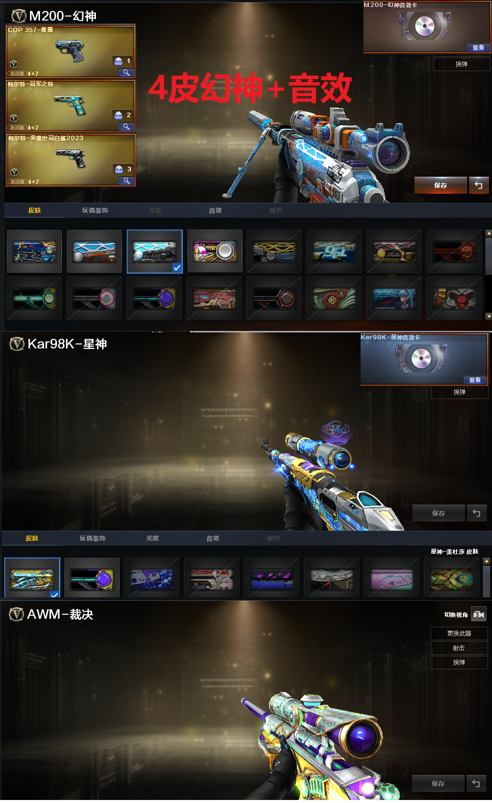 装备描述:排位:可以、、、、、、生化四防(可以变更背包、查看生化僵尸血量):无需换弹、6烈、6盘、炼狱、裁决、毒蜂、MK5-炽火炎龙、斯太尔蝴蝶、死亡之眼、8个生化减速雷、超级对讲机、全部弹匣、、、、、、、爆破四防:幻神4皮+音效(23白鲨、星火小队、曹操、动感闪耀皮肤)、98K星神、COP雷霆、23白鲨柯尔特、冠军之特、、、、G36幻影、QBZ云龙、QBZ金色蔷薇、白虎、、、、、幻神音效、星神音效、白虎音效、毁灭音效、黑骑士音效、、、1套雷暴、1套幻灵、3套竞技荣光、1套云龙、2套雷霆王者、、、生化四防(隼、灵动武士)、爆破四防(雨棠、星际战将)