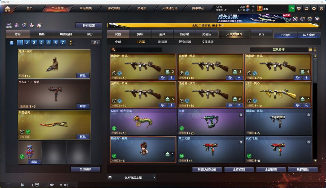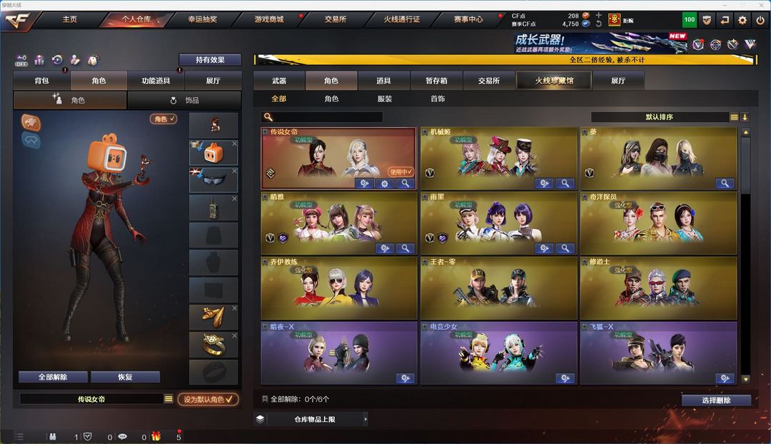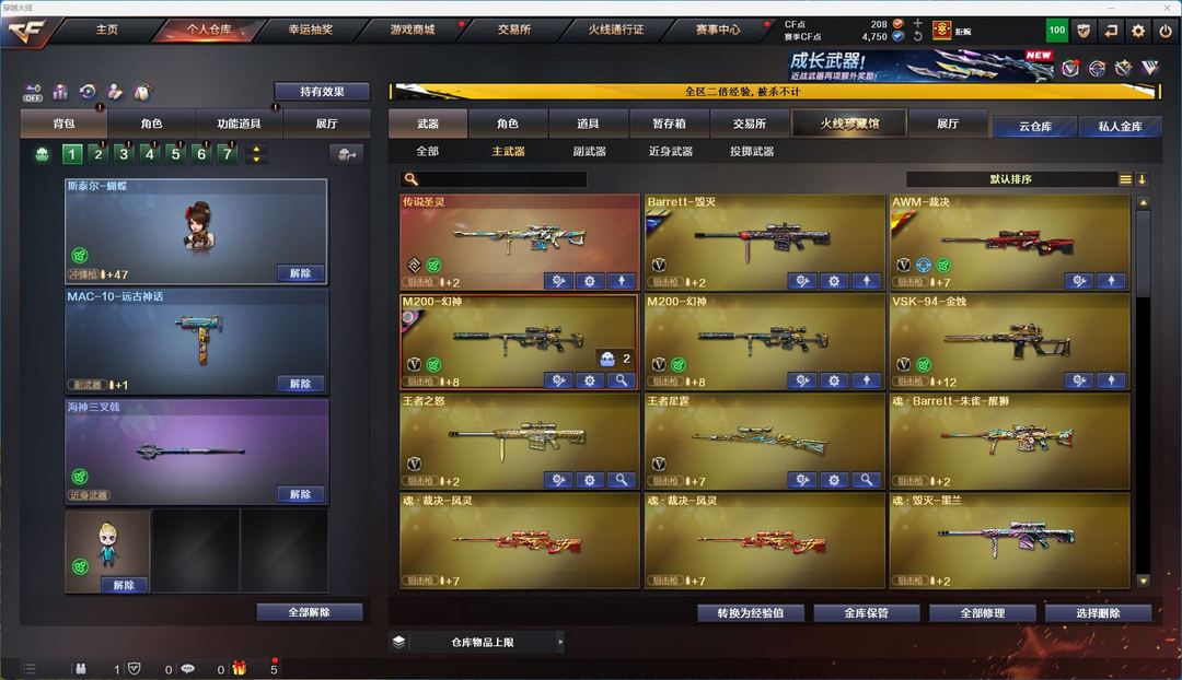 装备描述:传说女帝➕麒麟刺 6烈➕蝴蝶 毒蜂 蝴蝶刀 玄武 3把加特林一把盘龙 俩把幻神 裁决 毁灭 传说圣灵 满弹夹