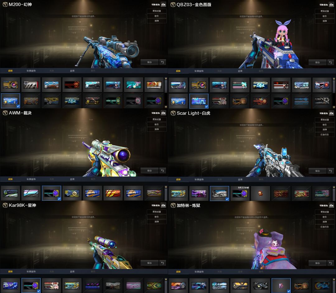 星骇幽瞳圣谕幻影天戎影煞八面泡泡象⭐幻神卡EP星火9皮⭐裁决音效卡7皮⭐QBZ电竞EP十皮白虎4皮