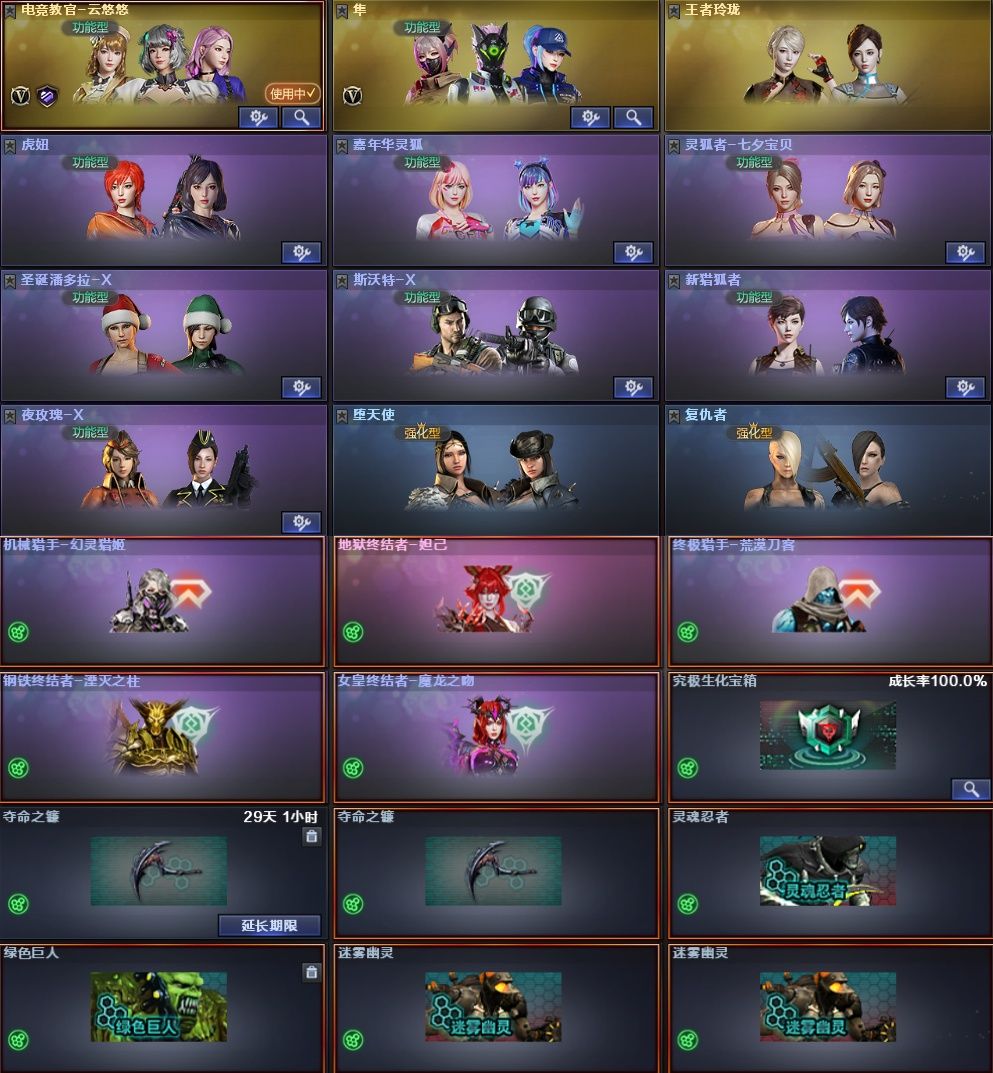 ✅优质生化爆破号✅传说幽瞳灵眸幽冥✅2皮幻神音效卡✅蔷薇幻影玄豹✅6烈蝴蝶✅隼四防30人生化角色5