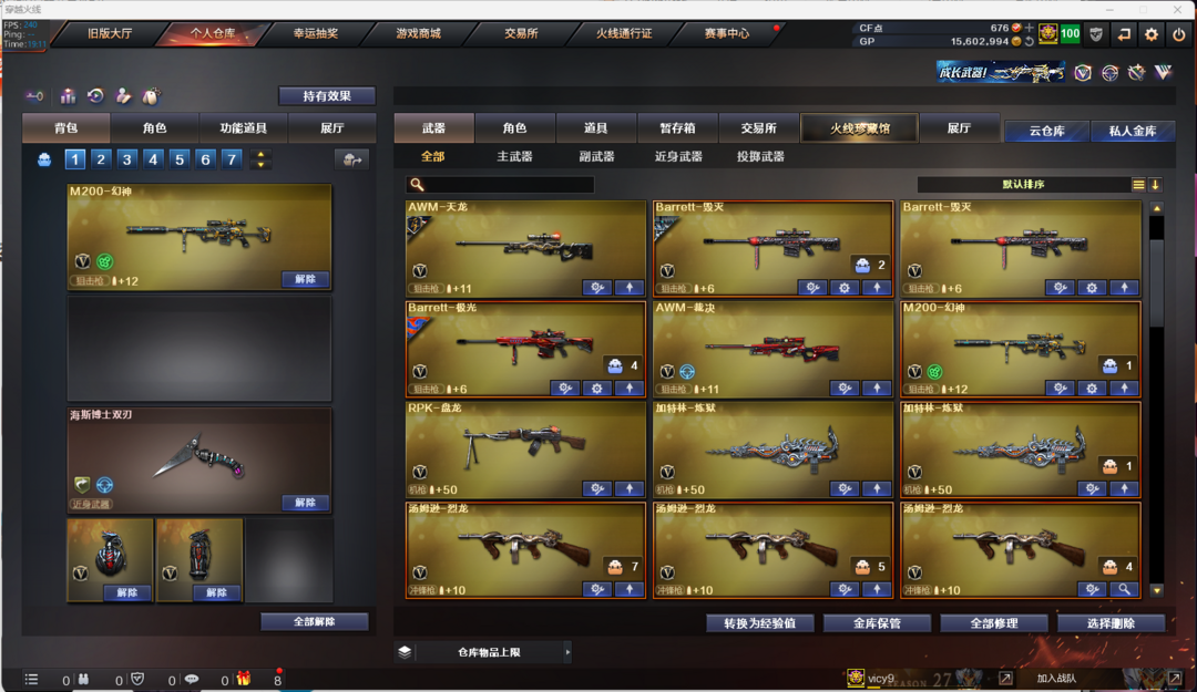95VM200幻神+6烈龙6手枪/3音效卡/雷神冠军之魄白鲨虎将