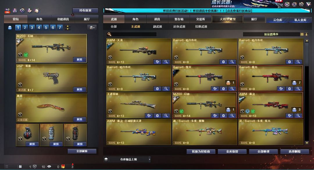 南部荣耀100V幻神+皮肤+音效★六烈龙+蝴蝶★7手枪荣耀之魄M4★王者星神★裁决+皮+音效★角色鹰
