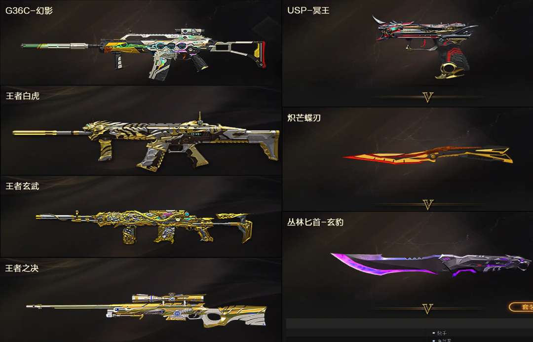 传说圣谕✨裁决4皮苍灵流光丹凤音效卡✨幻神幻影白虎王者之决✨USP冥王炽芒蝶刃匕首✨云悠悠关小雨