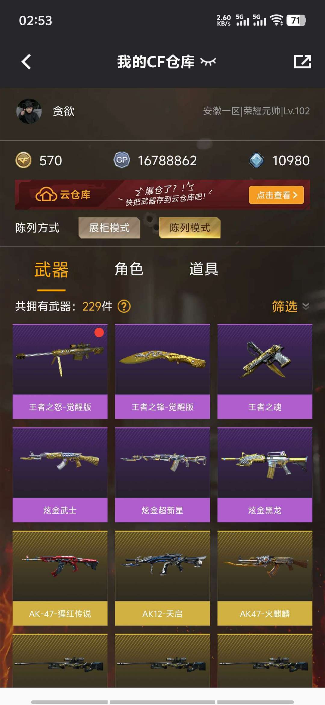 游戏区服:穿越火线-电信区-安徽一区