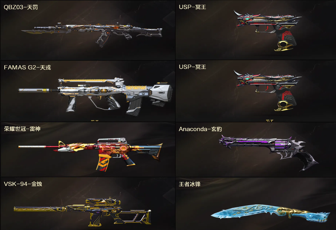传说圣谕⭐幻神新AG音效+裁决巅峰荣耀音效⭐玄豹套天戎天罚毁灭音效+2冥王USP冰锋⭐4防潘多拉貂