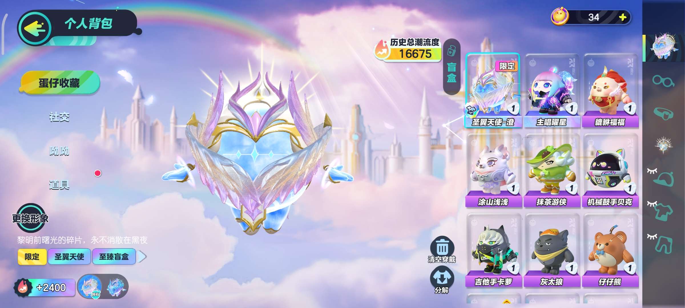 装备描述:【至臻】 圣翼天使澄 主唱耀星 玉龙扶风 兔子车