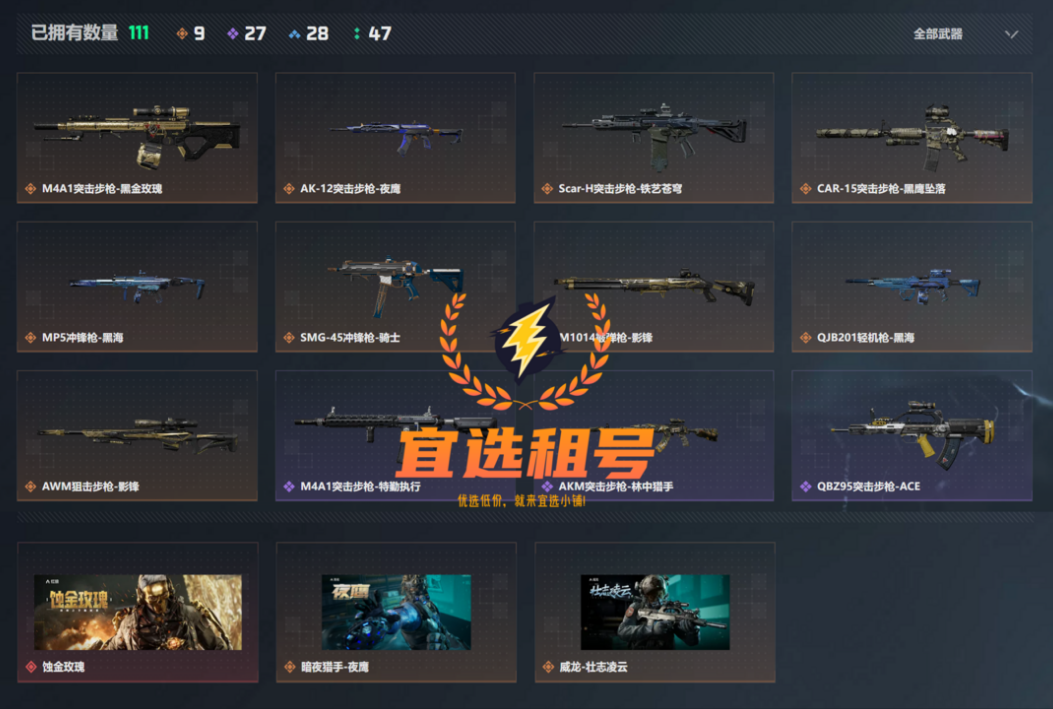 皮肤号 无币皮肤号⚡战斗部门6+6⚡双红天际线噬金全套双刀黑海影锋全套28金⚡宜选租号