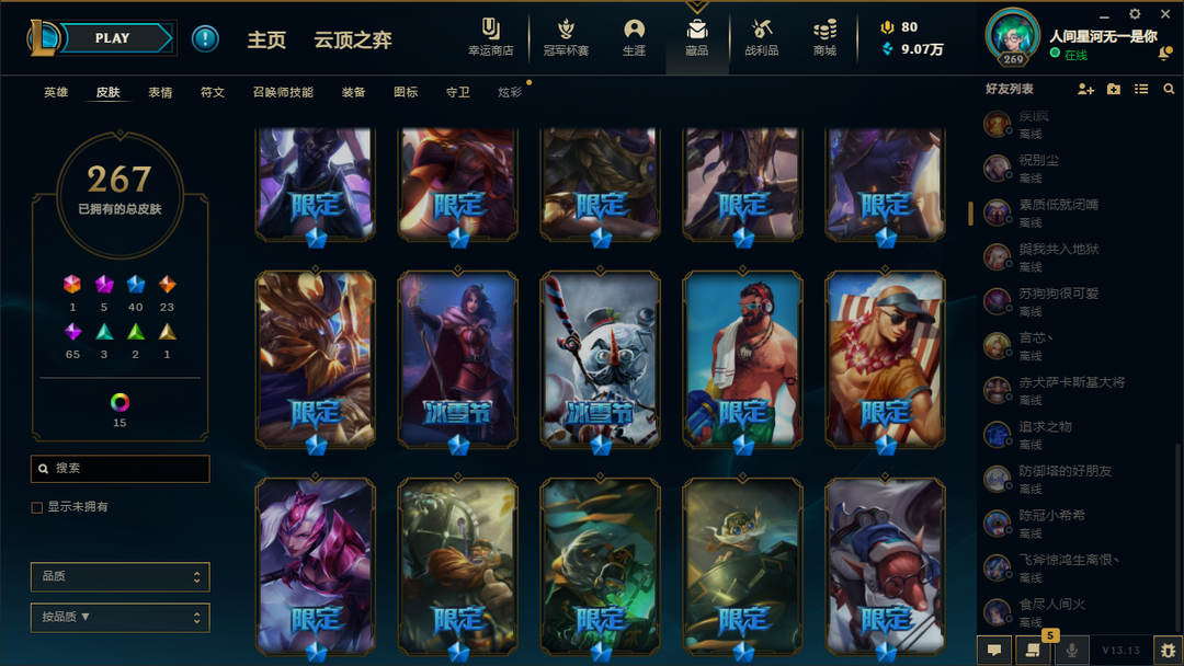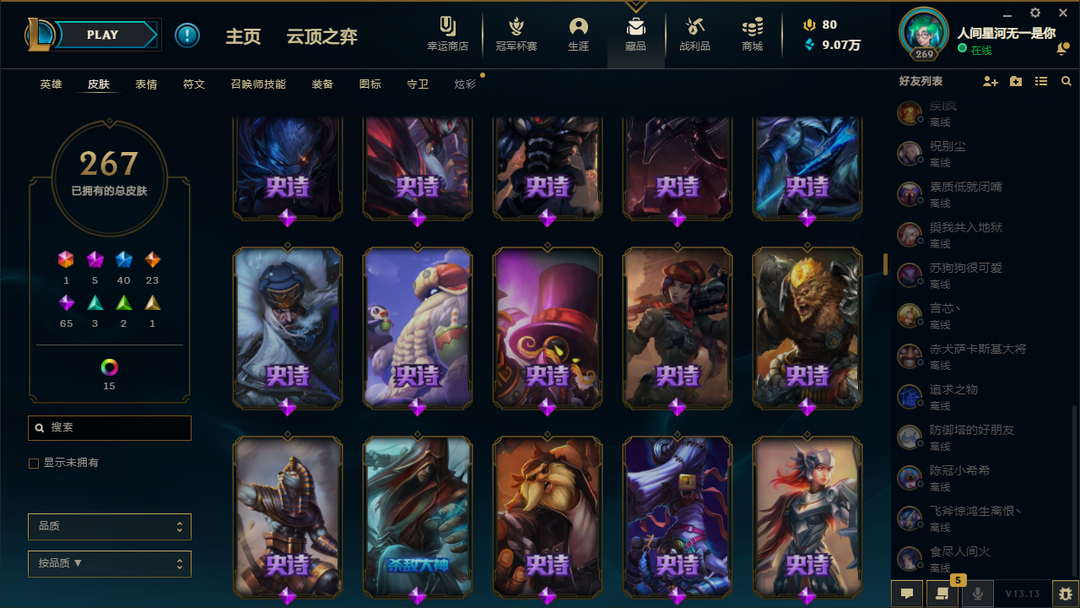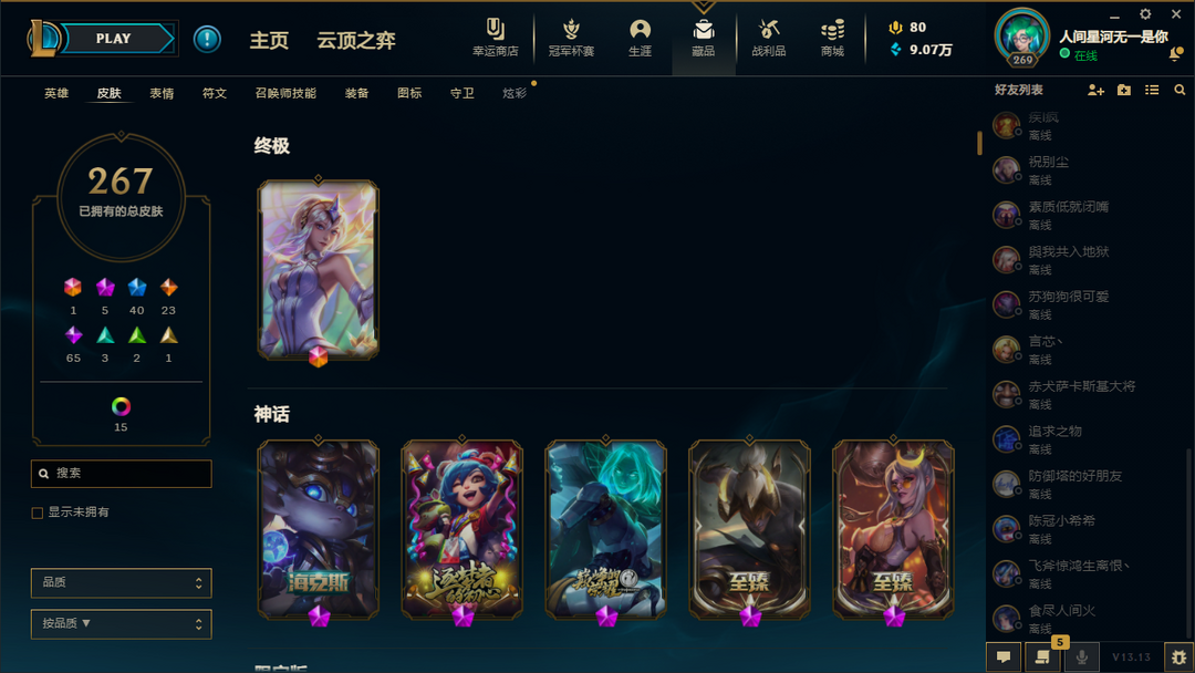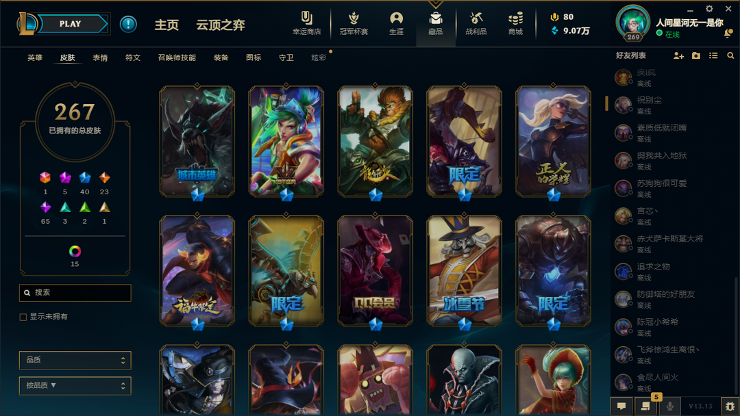 200P满英雄可排位神龙亚索至臻李青终极光辉至臻薇恩灵能萨米拉灌篮德莱厄斯黎明瑞雯战斗EZ