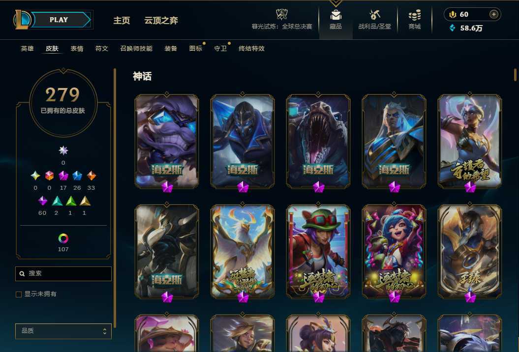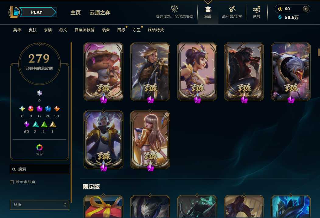 【艾欧尼亚】280P全英雄可排位至⭐至臻青花瓷拉克丝⭐至臻劫⭐至臻真实伤害亚索⭐至臻K/DA卡莎⭐
