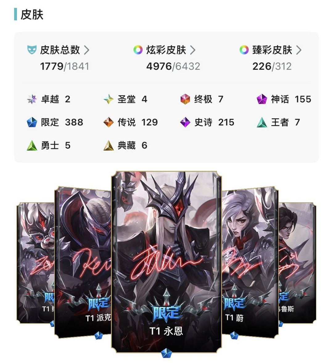 1750p❤️5000炫❤️uzi签名卡莎狐狸❤️超凡大师300分❤️T1冠军皮肤❤️云顶格温套