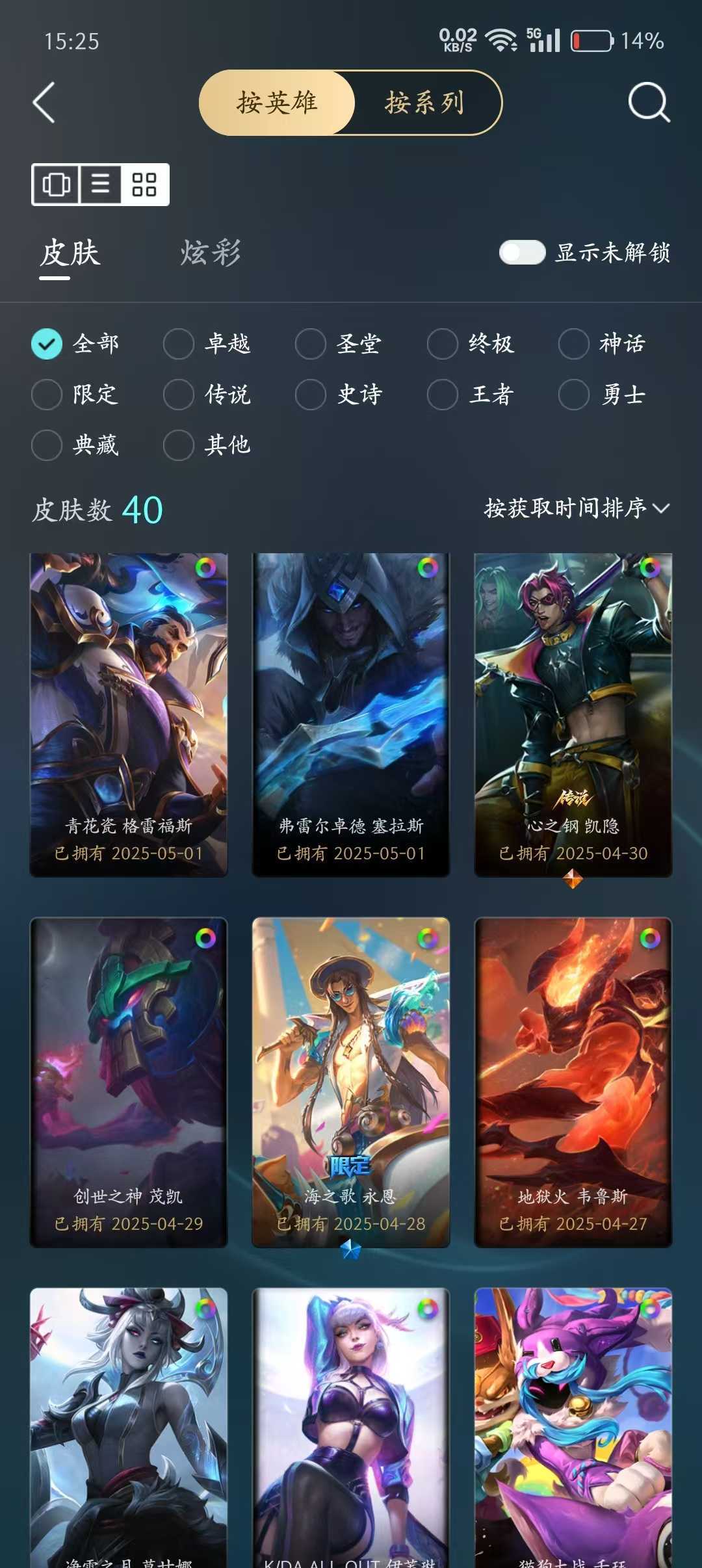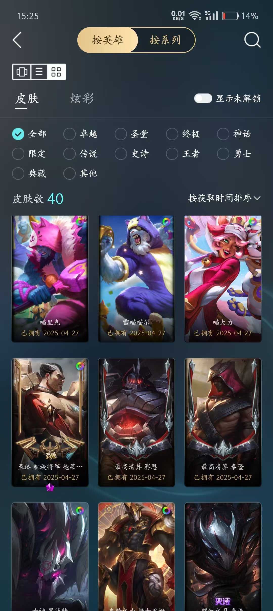 英雄联盟端游 暗裔英雄 盖伦 海之歌永恩 征服者 韦鲁斯水晶圣骑 塔莉垭 至臻 灵魂莲华 拉克丝