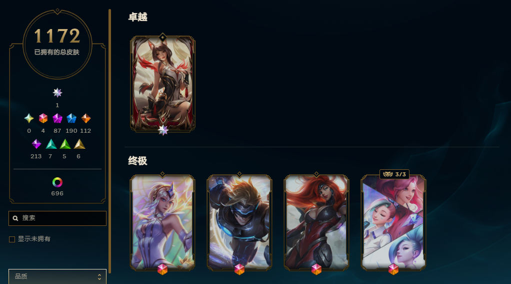 【比尔吉沃特】1172皮肤+696炫彩皮肤+全英雄+中等段位+可用精粹
