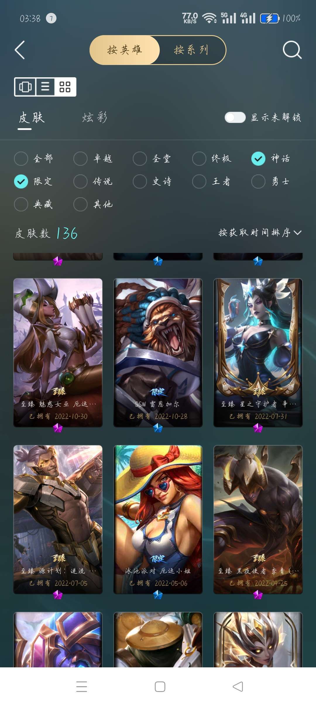 800多皮肤❤️各类限定和至臻皮肤❤️