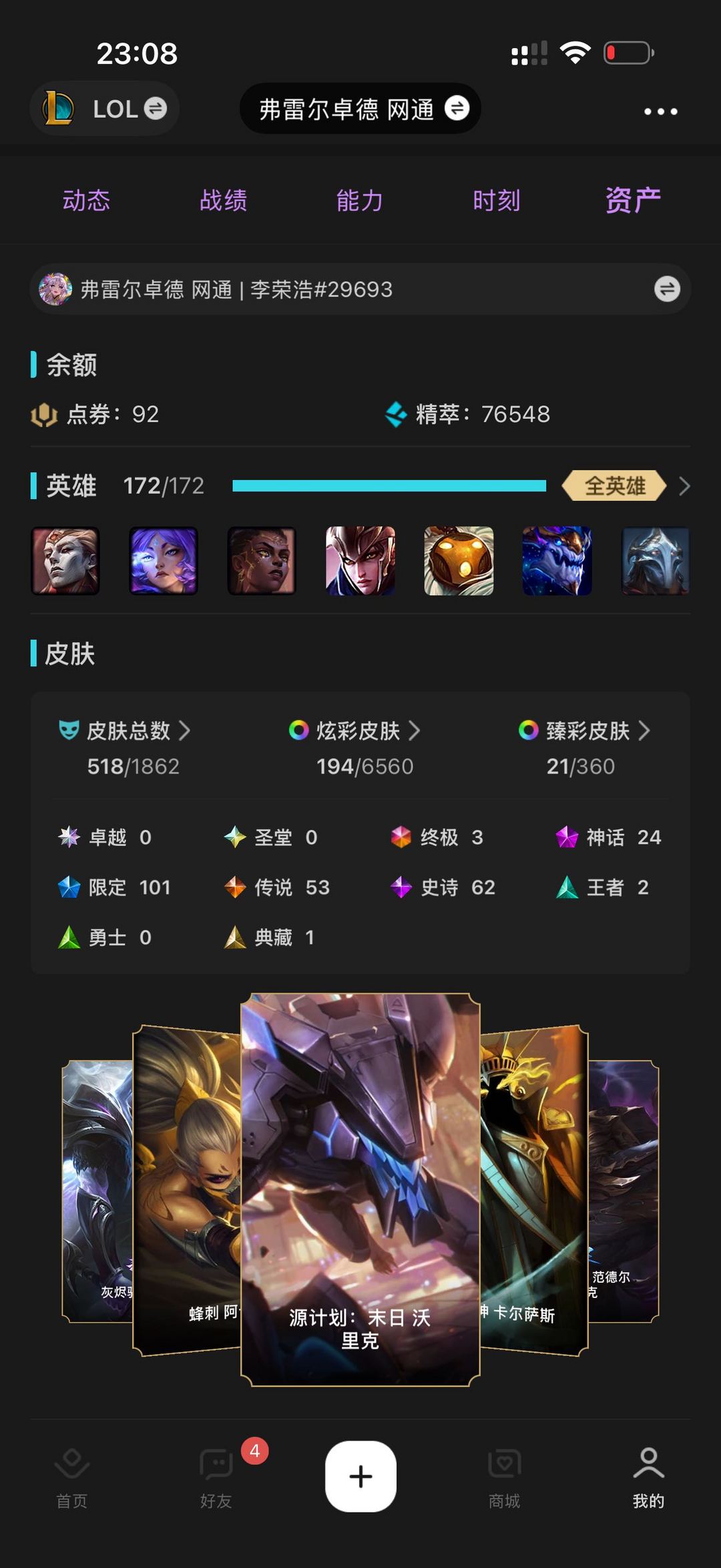 518皮 质量号 带妹号 限定多 传说多 每个都有一点皮肤 主流英雄皮肤很顶 欢迎来租 包售后