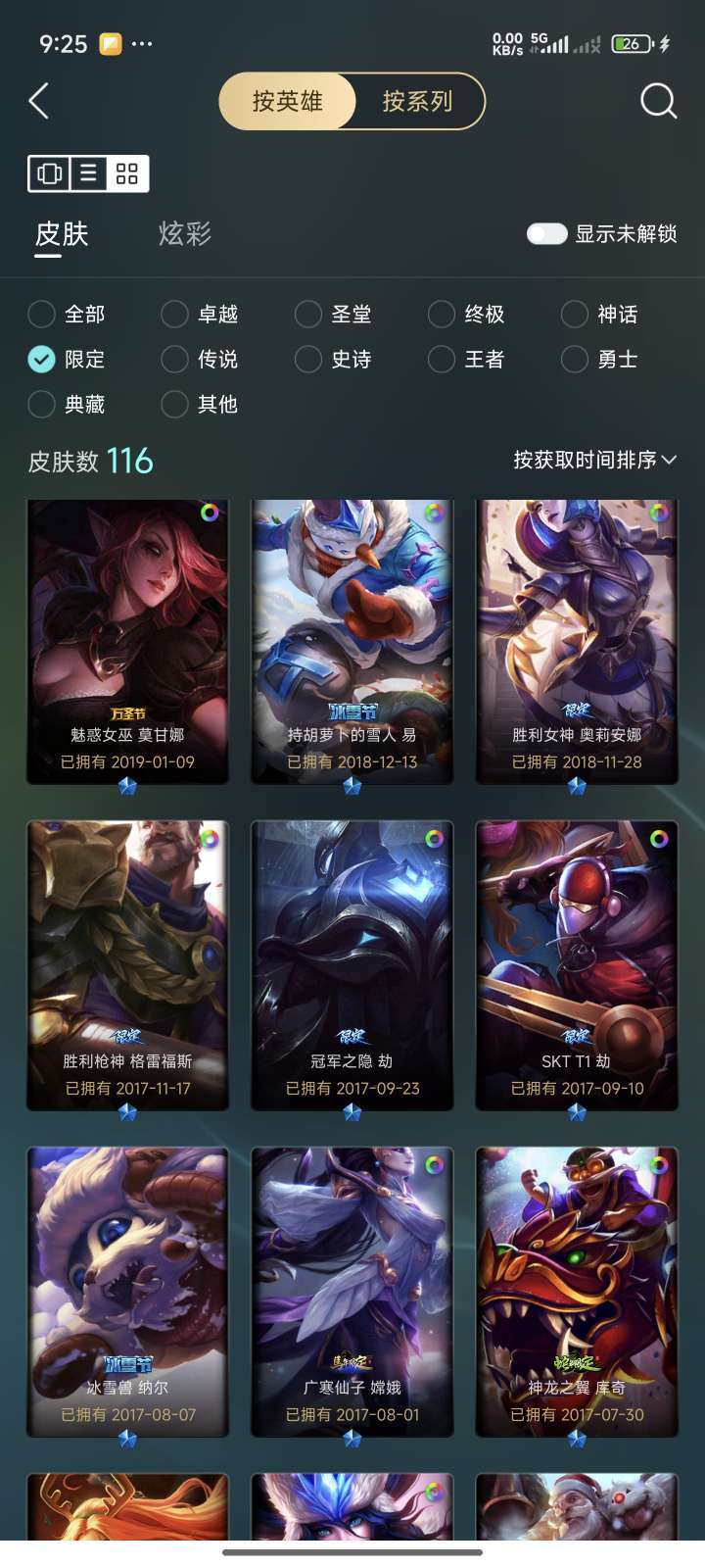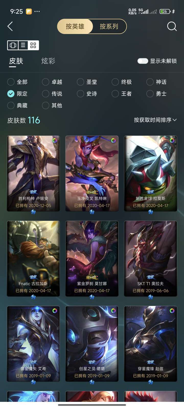 一共500➕皮肤,炫彩70➕,便宜实惠允许排位,无需押金,