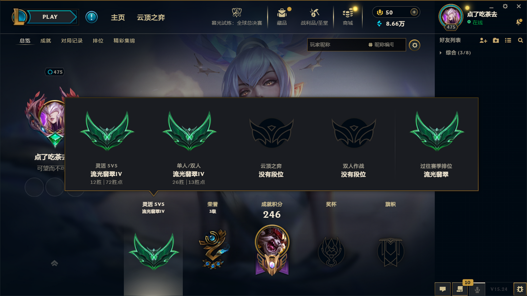装备描述:联盟三区,单双段位翡翠 全英雄可排位,纯手打,可长租 禁止游戏内送人头、挂机、利用账号进行开挂、使用辅助违规软件诈骗等违规操作。 祝您游戏愉快!