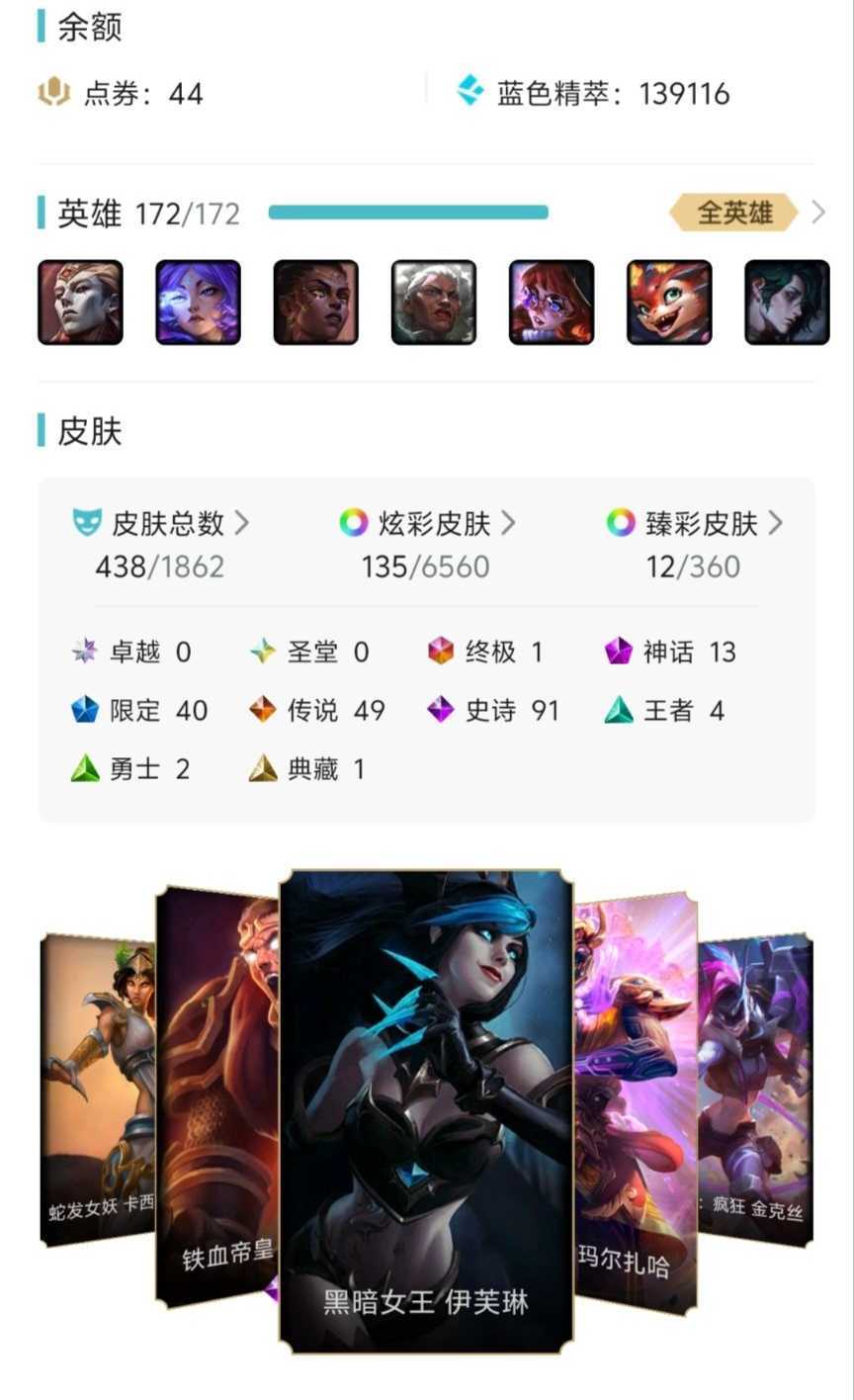 438皮13神话49传说1终极1典藏/霞至臻神凰锐雯至臻武剑仙铁男灰烬骑士鳄鱼海克斯妖姬至臻魔女