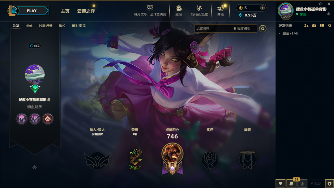段位:653级 当前赛季无