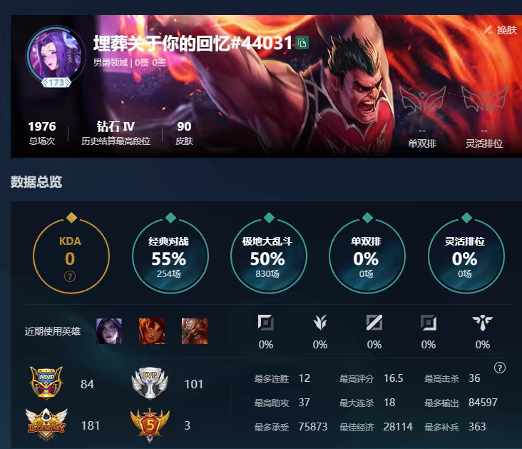 段位:173级 当前赛季无