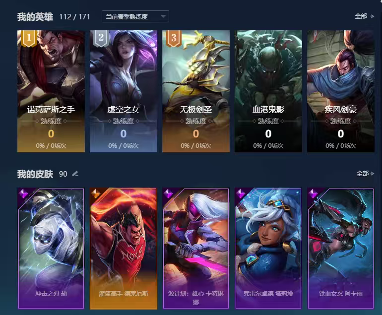 白菜价丨多英雄丨100皮肤丨可排位开黑匹配大乱斗虐菜