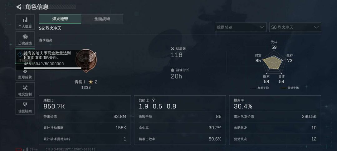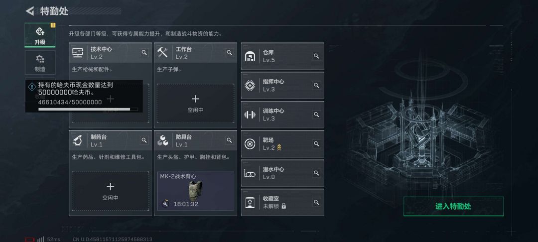 千万哈夫币 5692万纯币号,仓库还有一个六甲,10发AW子弹