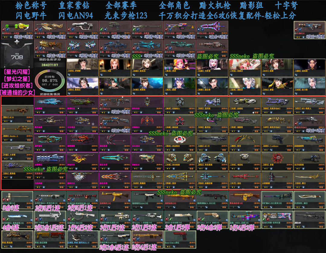 限制: 租号5次及以上 |装备描述:2025年10月,致命打击+极速飞奔已确定激活。【请勿使用账号芯片】 【有建议请您⑤星好评+留言,谢谢】 ★900级,粉色称号,94%武器持有! ★特典武器:黯火机枪+黯影狙! ★全部武器全6攻6恢复配件,请您去仓库里自行切换! ★闪电AN94、闪电野牛,光束123,轻松上分。 ★怀旧黑龙炮、怀旧斧头、怀旧电锯、怀旧海皇、怀旧盘龙、末日骑士2伤4后1连、末日金骑5后4弹。 【玩过别忘收藏!!!用心打造极品账号,给您最棒的游戏体验!】