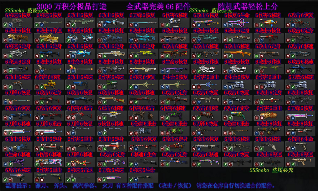 天喵』紫钻☀白龙神☀黯影狙☀粉称全神94%持☀三闪电☀光束123☀电音三太子☀巨人切割者☀立体机动