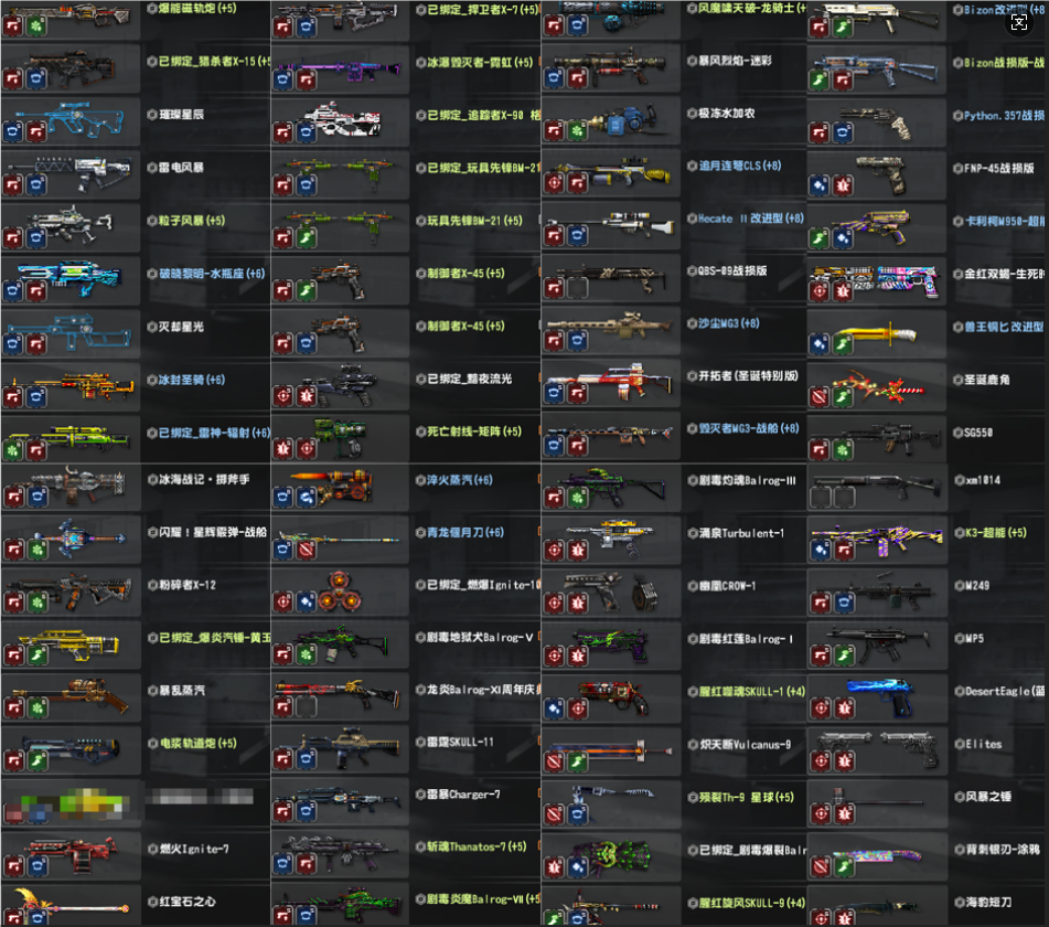 龙腾蓝●特典加特林黯火●龙神●怀旧套盘龙炮海皇电锯●94闪电野牛●维京套●光束1●暗火去雾