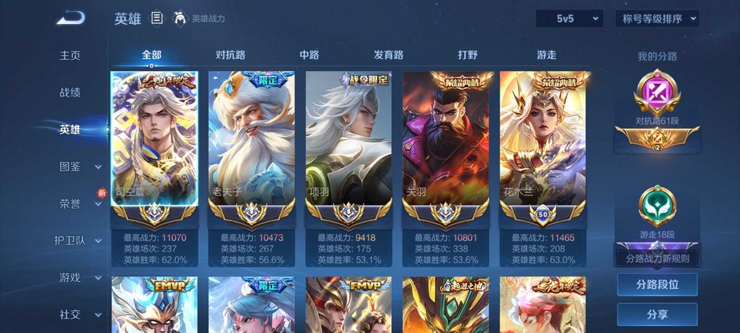 10月在榜大国标司空震老夫子⭐️巅峰万强1100名⭐️历史国服关羽项羽⭐️可排位禁巅峰