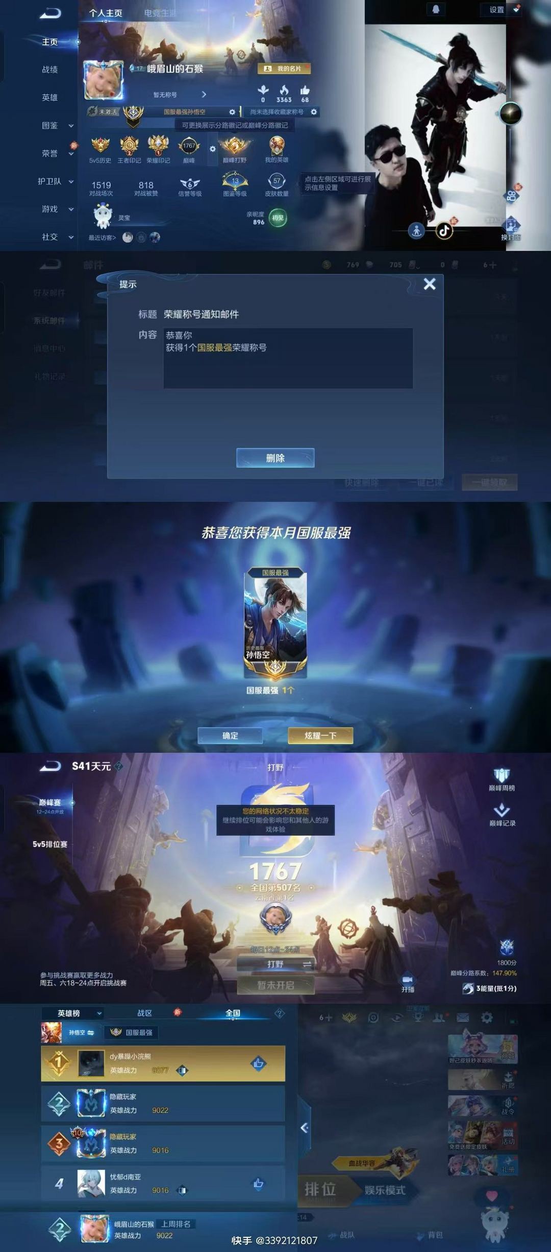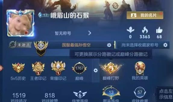 10月在榜国服孙悟空⭐至尊宝限定⭐巅峰1767框⭐超多省级限定皮肤⭐可排位禁巅峰
