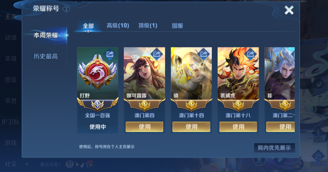 在榜小国打野115段.禁巅峰巅峰万强闪电框⭐10省标露露镜马超菲老虎蚩吒诸葛宫本等等⭐历史5大8小国