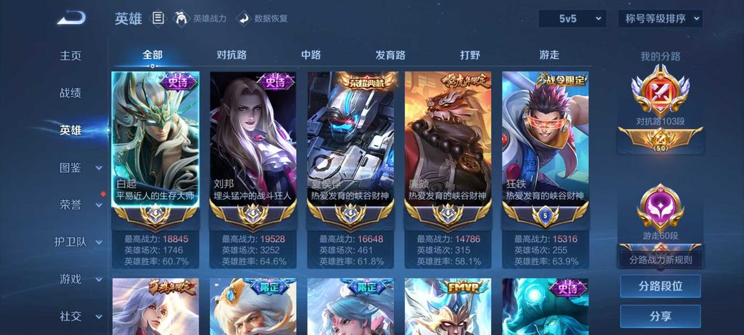 巅峰开⭐️正式服103段对抗路⭐️历史国服白起刘邦夏侯惇廉颇⭐️历史小国狂铁等