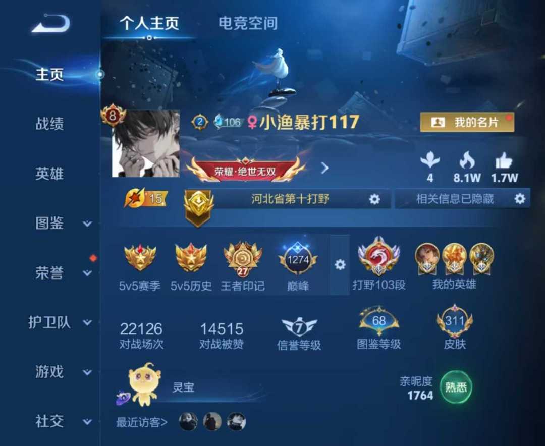 103段省级百段打野✨️巅峰魔方已亮✨历史三国服云缨盘古鬼谷八小国标澜曜✨️男神带妹号✨可排位可巅峰