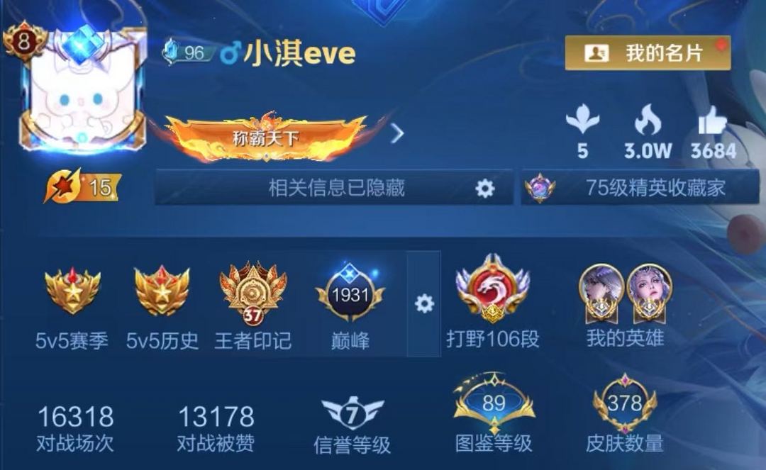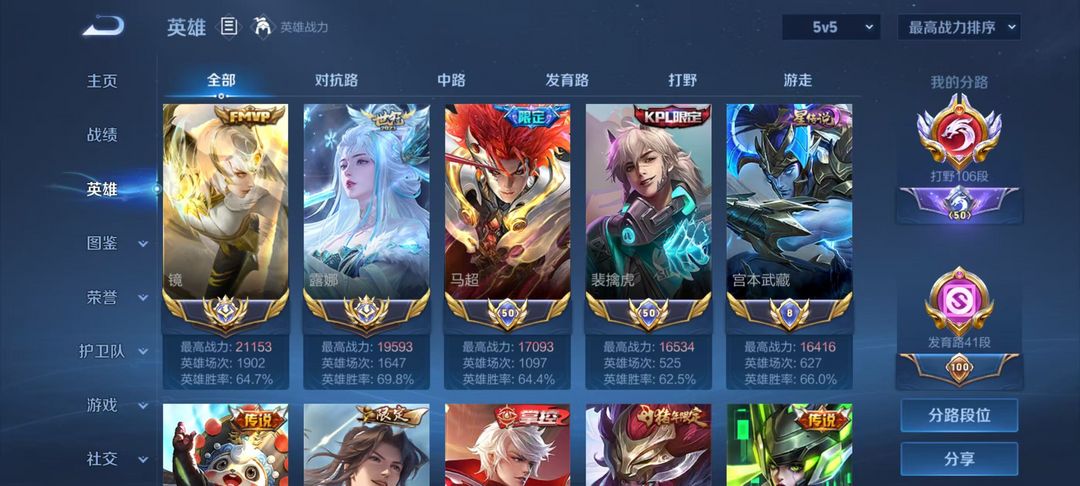 正式服在榜106段打野⭐2w1国服镜⭐2w分国服露娜⭐超多省级限定皮肤⭐可排位