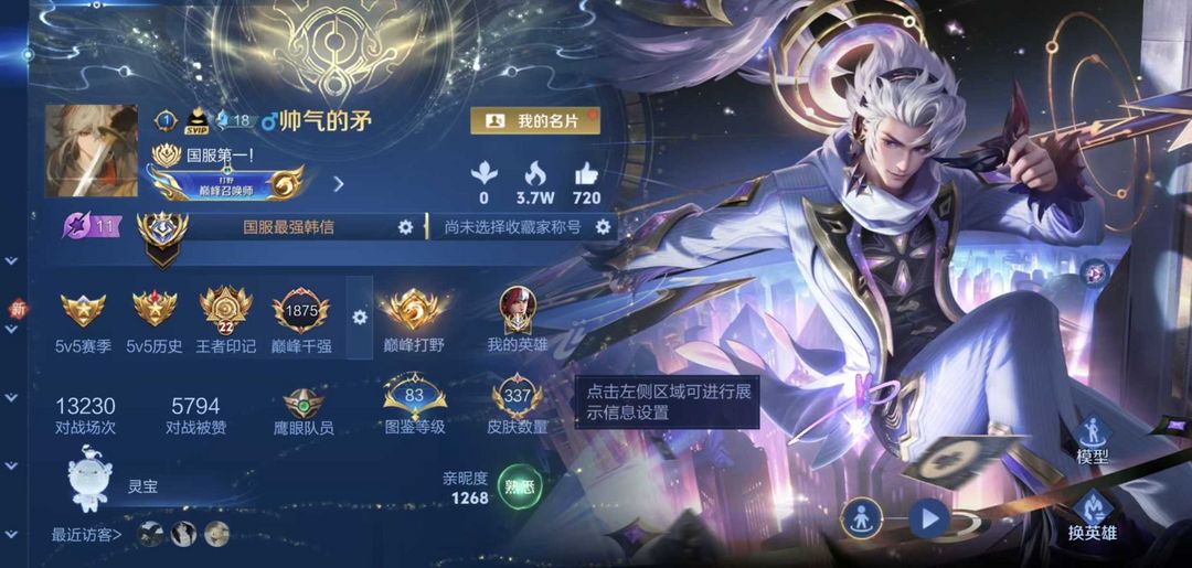 『巅峰千强533名』10月正式服在榜国服韩信⭐⭐️极品野王账号⭐️⭐️禁巅峰可排位