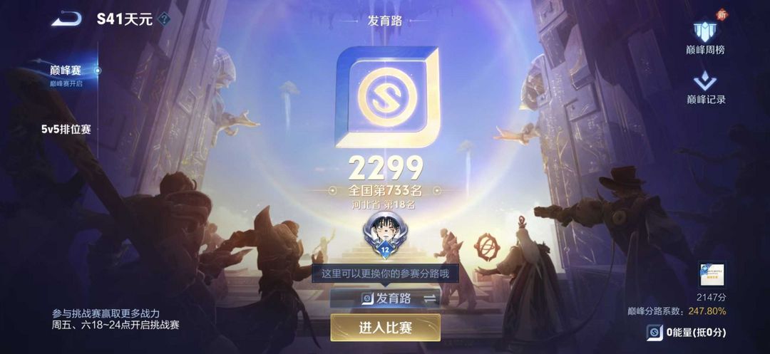 在榜百强发育路❤省元流之子❤禁巅峰万强2299❤发育路117段❤历史10国服❤2万分公孙离马克