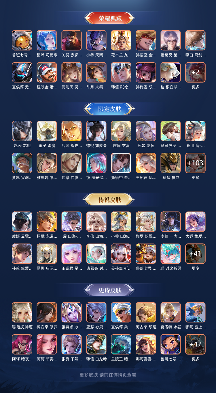 荣耀贵族前百 735 皮,赞萌露比小兵,天幕 【国服瑶,三小国李白镜露娜】满隐藏灵宝,满小兵,满星
