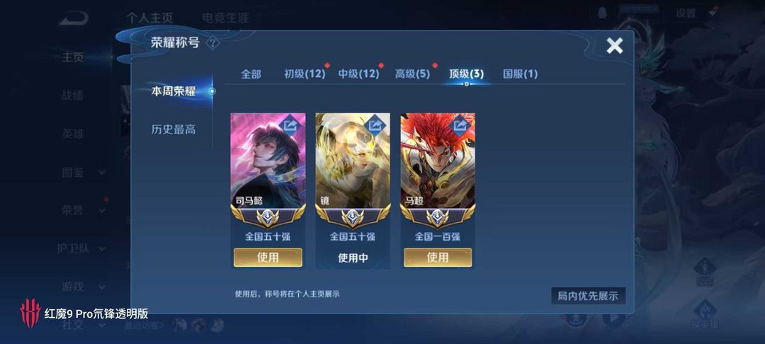 《巅峰万强》10月在榜小国标50强镜马超司马懿⭐️历史国服司马懿露娜⭐️可排位禁巅峰