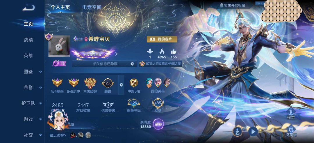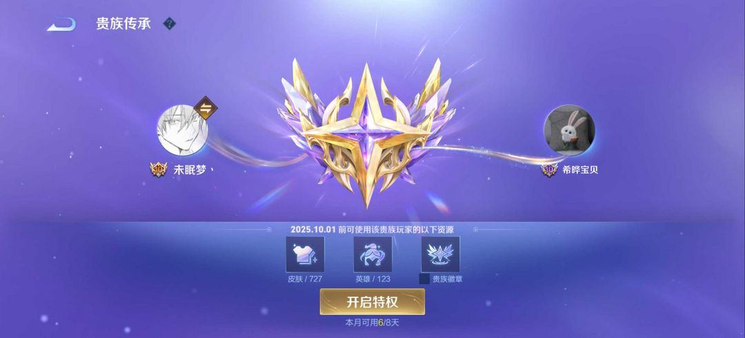 限制: 租号1次及以上 | 撤单率<45%才可租用此帐号装备描述:726皮荣耀贵族传承号,上号需要自己手动开启传承共享大号皮肤,,大号缺s345赛季皮肤和女武神,满星传说