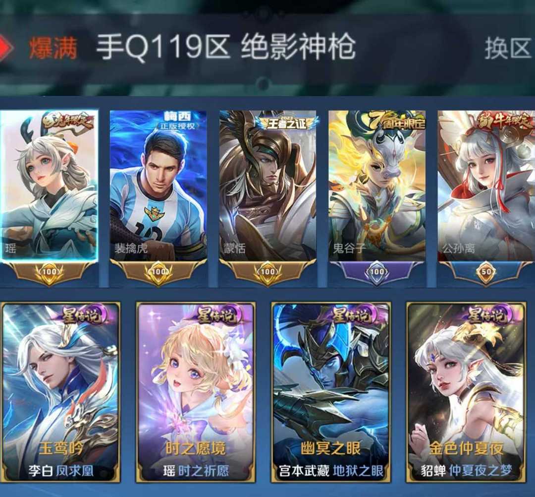 限制: 租号5次及以上 |装备描述:【C254】贵族V10~富婆女号512皮肤10水晶64传说1无双金标瑤青丘九尾,情瑶,神鉴启示录,倪克斯神谕,星域神启,续相思,妄想实况,追逃游戏,永恒水手月亮,浮生妄,炽霜斩,无双飞将,启示之音,女娲补天,李逍遥,太华,天魔缭乱,全息碎影,鸣剑曳影,大秦宣太后,星空梦想,天鹅之梦,杀手不太冷【全山海情兔年,全寅虎,全五虎上将,全牛年,全五兽】
