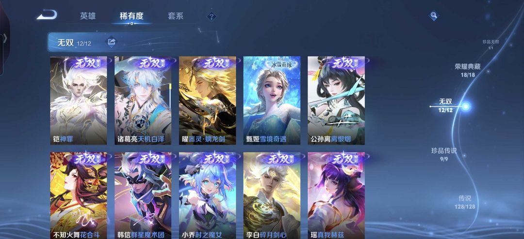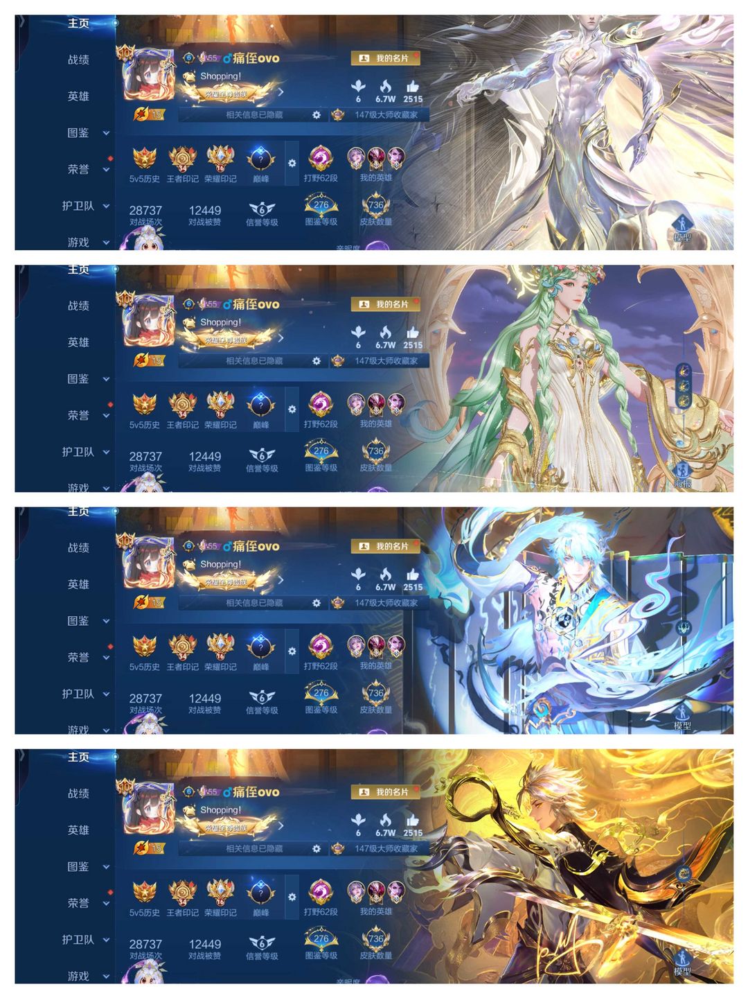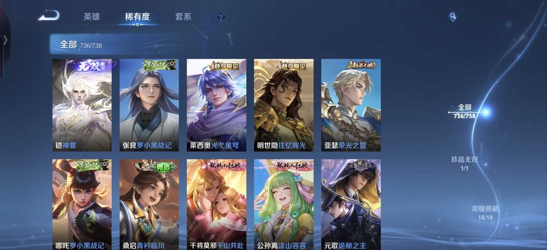 736满皮荣耀贵族♥凯神罪无双诸葛亮无双白泽♥大国干将猴阿珂五国服♥穆夏馥梦繁花♥满水满无双