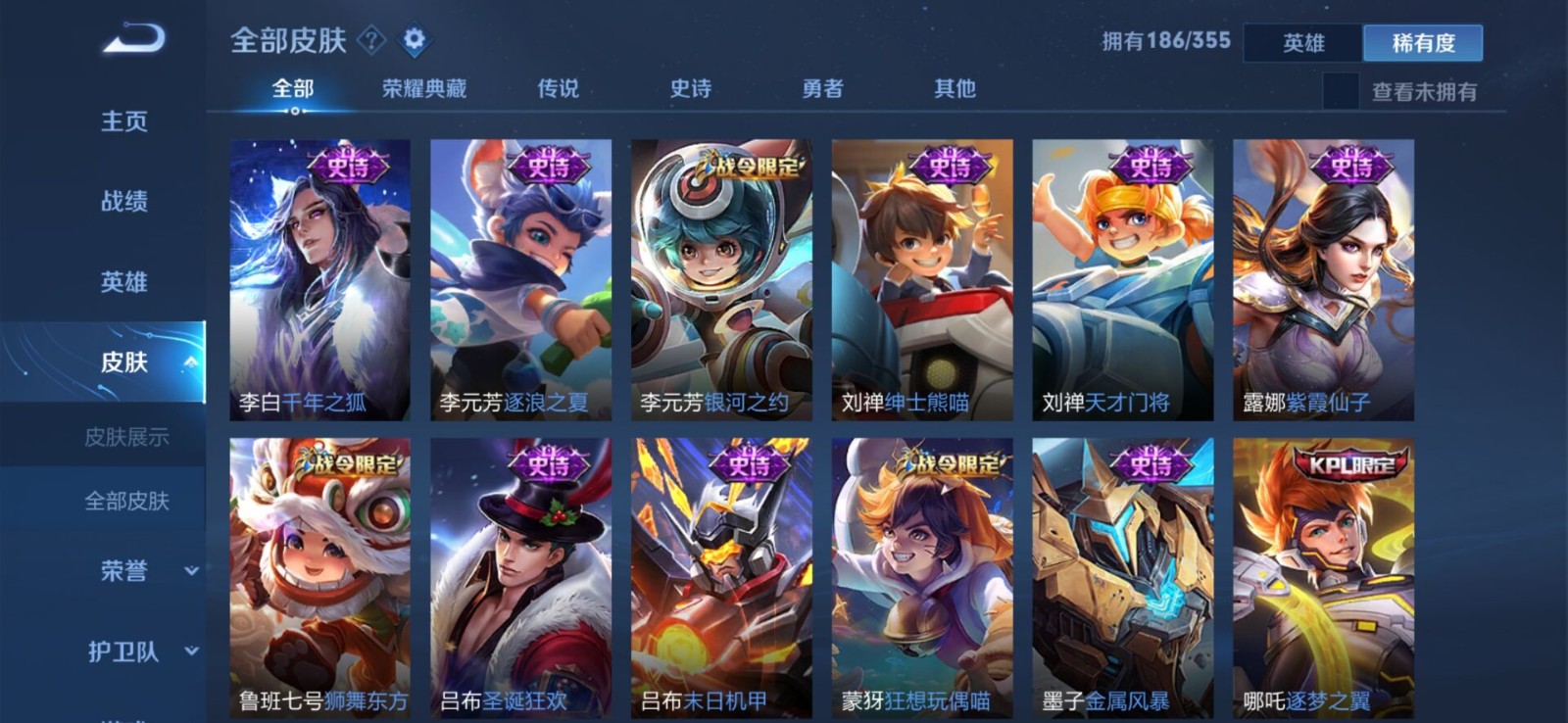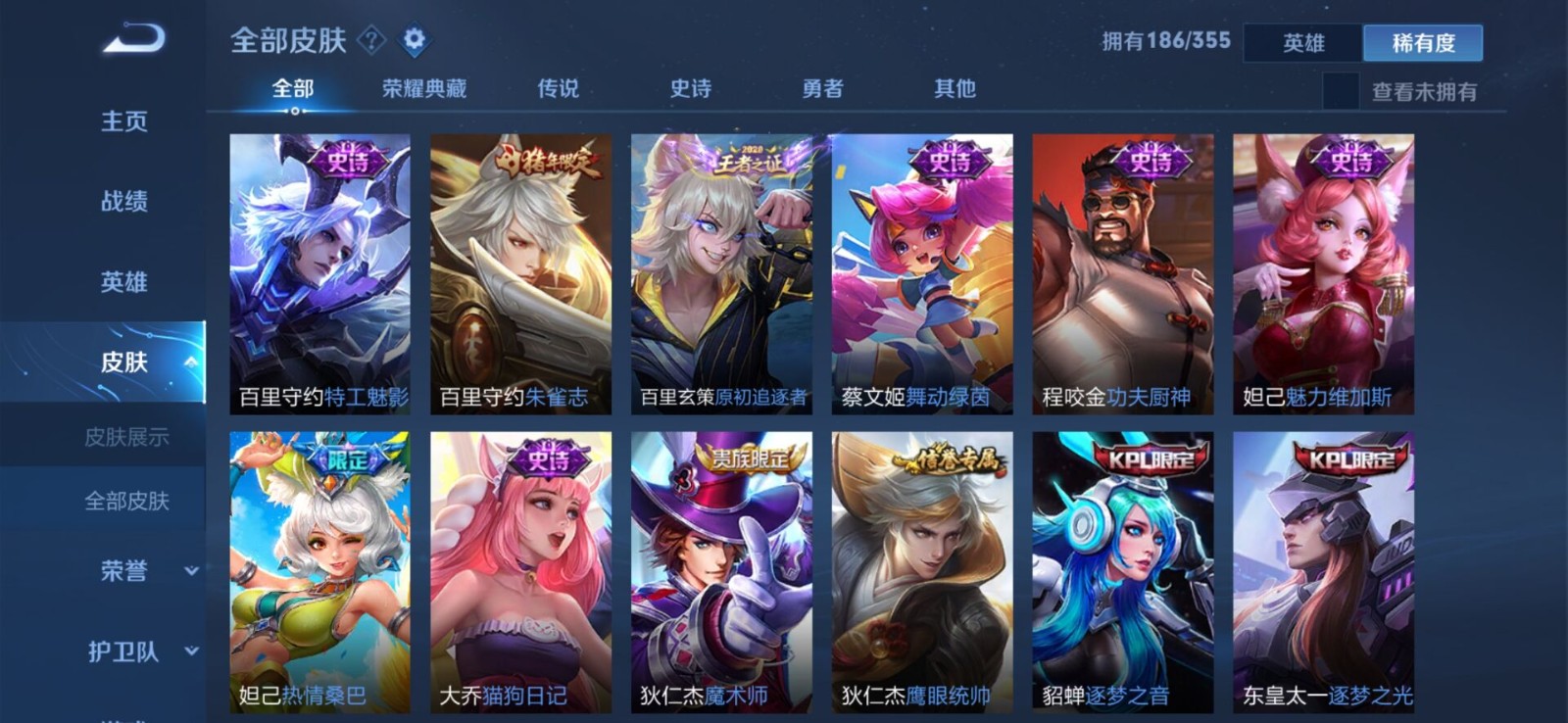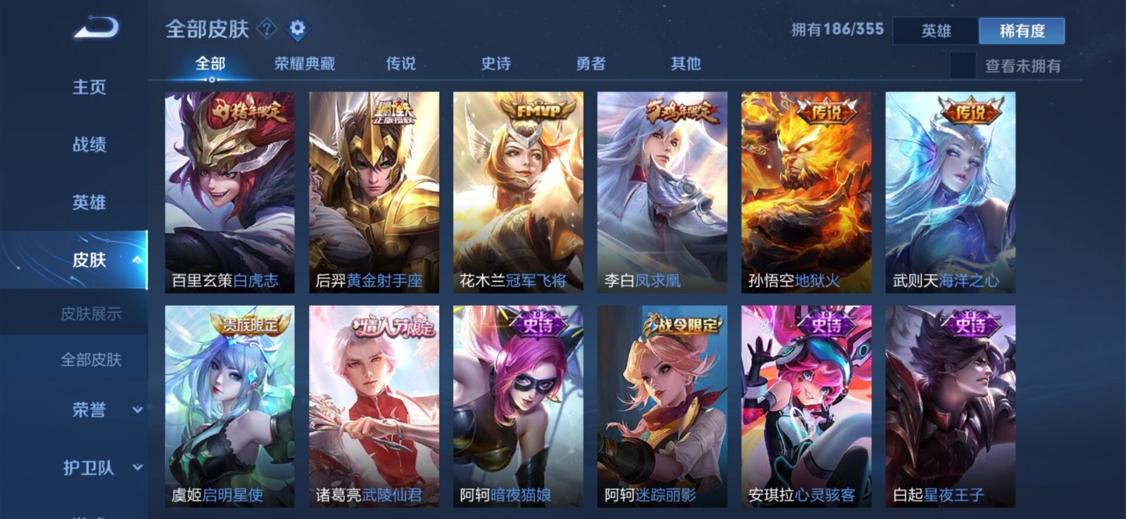 v8可排210皮 历史省级嬴政 百里守约 猪八戒 雅典娜 超多传说限定