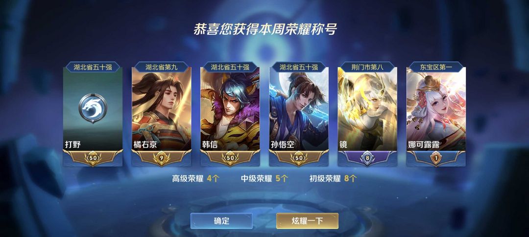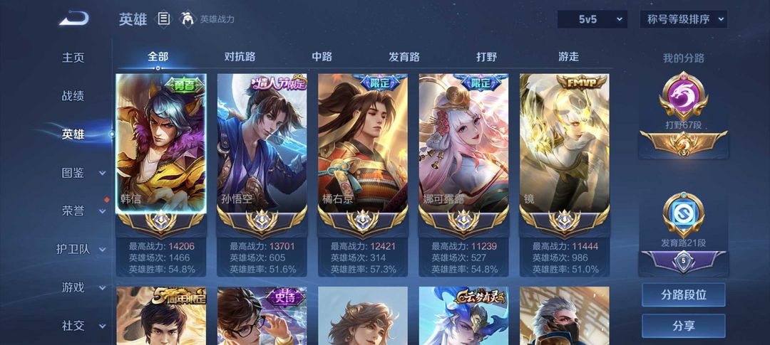 本周在榜省橘右京韩信孙悟空⭐67段打野⭐历史国服镜韩信娜可露露橘右京