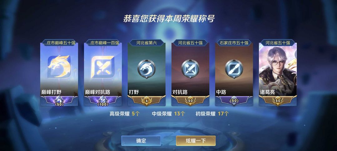 本周在榜省诸葛亮马超⭐碎月剑心⭐74段打野⭐历史大国服李白雅典娜嫦娥