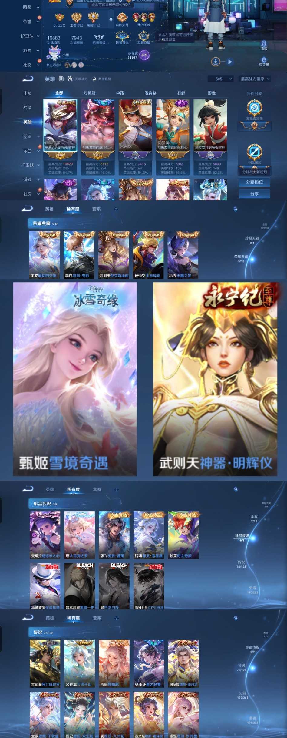 限制: 租号2次及以上 | 撤单率<49%才可租用此帐号装备描述:时间到了还登录白玩或者顶号全部改密拉黑处理永不解除,顶号机器会秒禁玩改密,顶号不仅拉黑还没得玩,赚三两块不容易,请理解谢谢。 ❤❤❤❤❤❤❤❤❤❤❤❤❤❤❤❤❤❤❤ 请勿开挂,挂机,送头,骂人,撤单后游戏等如有违规永久拉黑永不解除。 重置二级密码不要费劲了,号主每天都会上号查看,多行不义必自毙,人在做天在看,多做好事多自律,少做缺德事。 该号英雄127个皮肤529个,典藏6个,无双2个,珍品传说6个,传说75个,史诗170个,祝您游戏愉快~